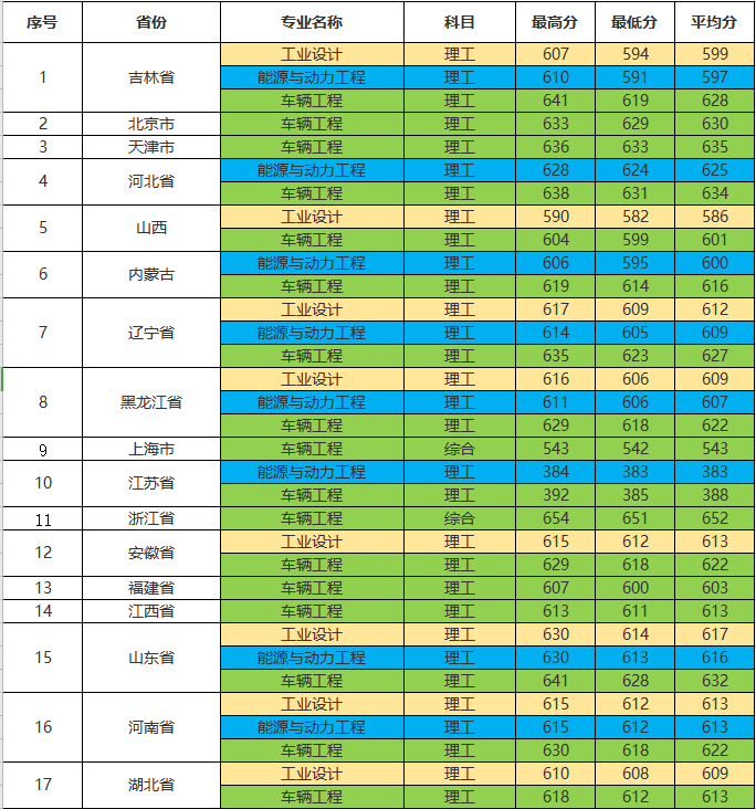 2018年本科专业各省录取分数线