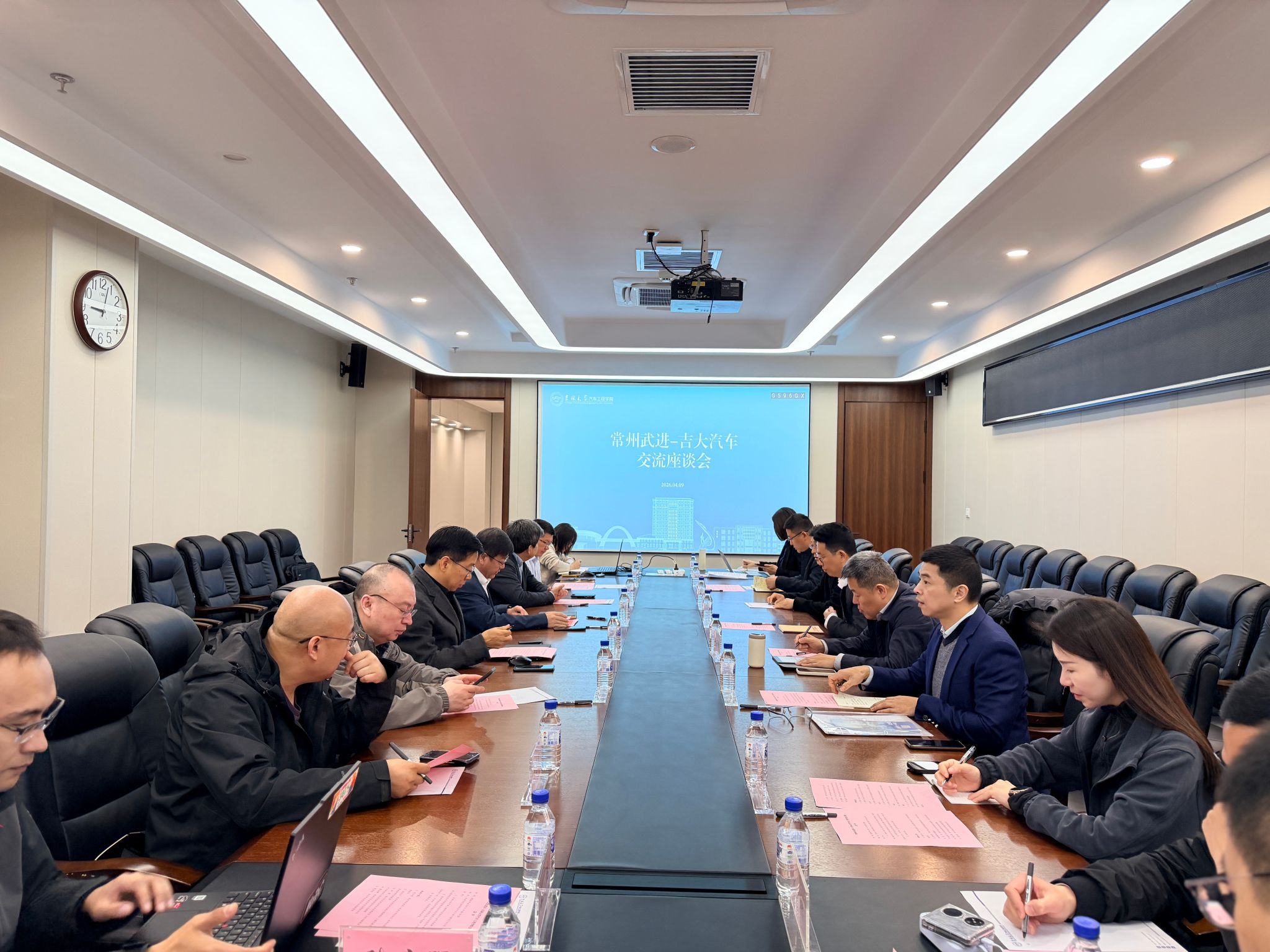 2026年4月9日,常州武进区科技镇长团一行8人来访污污漫画 ,围绕智电汽车、高端装备、新型储能、关键核心技术攻关等领域开展产学研合作专题洽谈。学院党委书记黄忠华、副院长胡兴军,汽车底盘集成与仿生全国重点实验室副主任闵海涛、章新杰以及教师代表出席了会议。